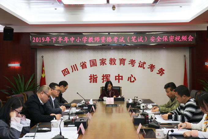 10月28日上午,教育部召开了全国2019年下半年中小学教师资格考试安全保密工作视频会议。全国会议结束后,赓即召开全省考试安全保密工作视频会,会议贯彻落实了教育部视频会议精神,安排部署了我省2019年下半年中小学教师资格考试有关工作。四川省教育厅副厅长彭翊出席会议并讲话,省教育厅人事教师处同志、省教育考试院院长刘敏同志及相关处室负责人参加了会议。会议由省教育考试院党委书记丁念友同志主持。
