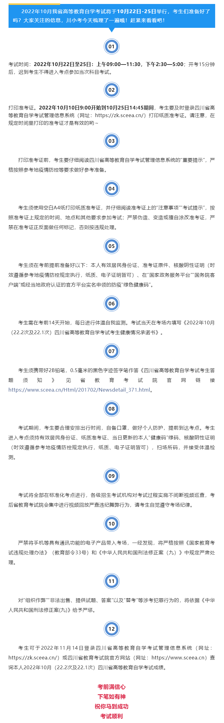 考前温馨提示!2022年10月自学考试将开考,这12点需注意哟!!