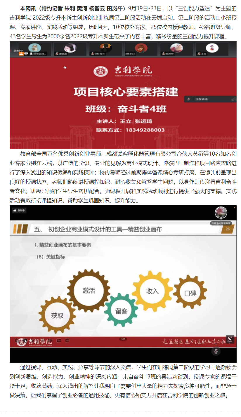 吉利学院2022级专升本新生创新创业训练周第二阶段圆满结束