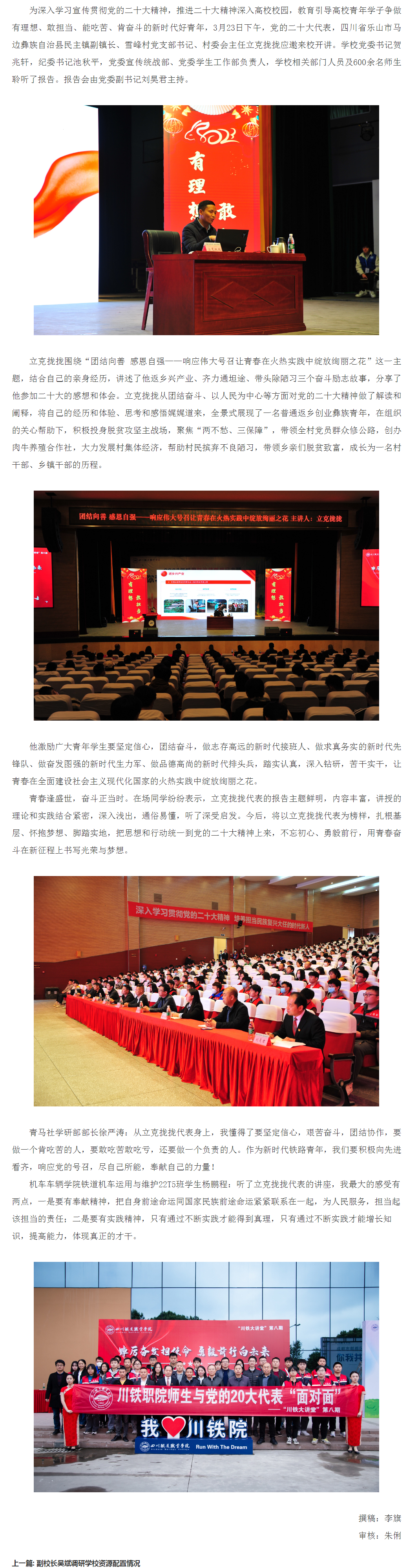 “川铁大讲堂”第八期:团结向善 感恩自强——响应伟大号召让青春在火热实践中绽放绚丽之花