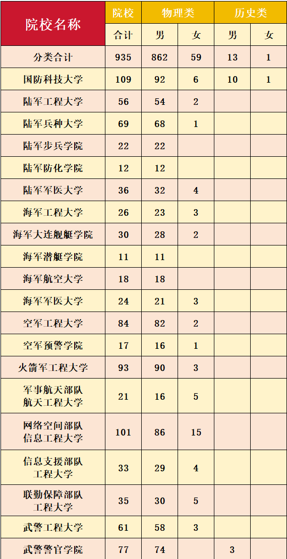 根据教育部和中央军委政治工作部、训练管理部《关于印发〈2025年军队院校招收普通高中毕业生计划〉的通知》,今年共有20所军队院校计划在川招收普通高中毕业生935人。