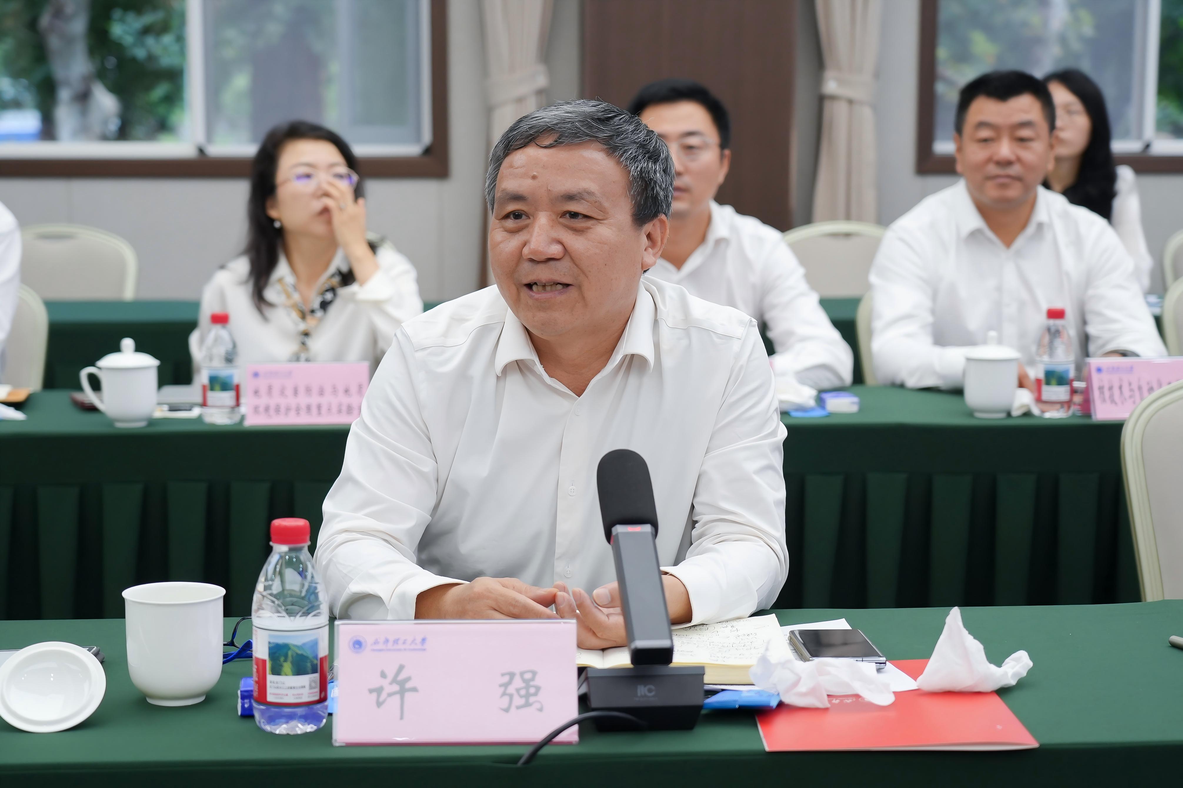 许强介绍了成理在学科建设及大学治理等方面的工作情况。他提到,成理目前正在构建特色更鲜明的学科体系:一是深化机构改革;二是推进学科交叉创新;三是布局基础与新兴领域。他提到,成理正积极布局学科交叉创新,除传统地矿油优势外,学校正加快布局材料、信息、环境、数学等理工交叉方向,打造新的增长点。他强调,成理认真贯彻落实习近平总书记关于教育的重要论述,锚定“高质量发展、高效能治理、高品质生活”的发展路径,持续完善学校综合改革、内控体系、机构优化、数智赋能“四位一体”治理模式。他期望,两校要以此次座谈为新的起点,在人才培养、科技创新、师资建设、治理体系等方面开展全方位合作,共同服务国家重大战略需求,为中国式现代化建设贡献地学力量。