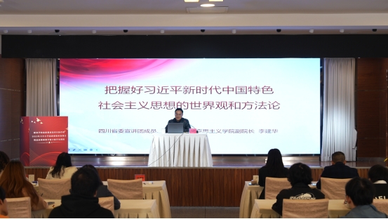 在专家辅导报告阶段,四川大学马克思主义学院副院长,中央马工程重点教材《习近平新时代中国特色社会主义思想概论》编写组成员李建华教授作为特邀专家,作了题为《习近平新时代中国特色社会主义思想的世界观和方法论》的专题讲座。报告中,李教授从“六个必须坚持”系统阐述了习近平新时代中国特色社会主义思想的世界观、方法论,内容丰富、逻辑清晰、论述精辟,为参会教师深化思政课教学提供理论指引。