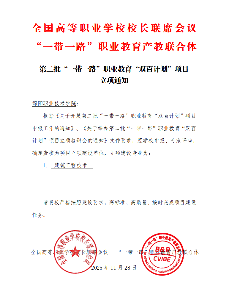 绵阳职业技术学院 | 我校成功立项第二批“一带一路”职业教育“双百计划”