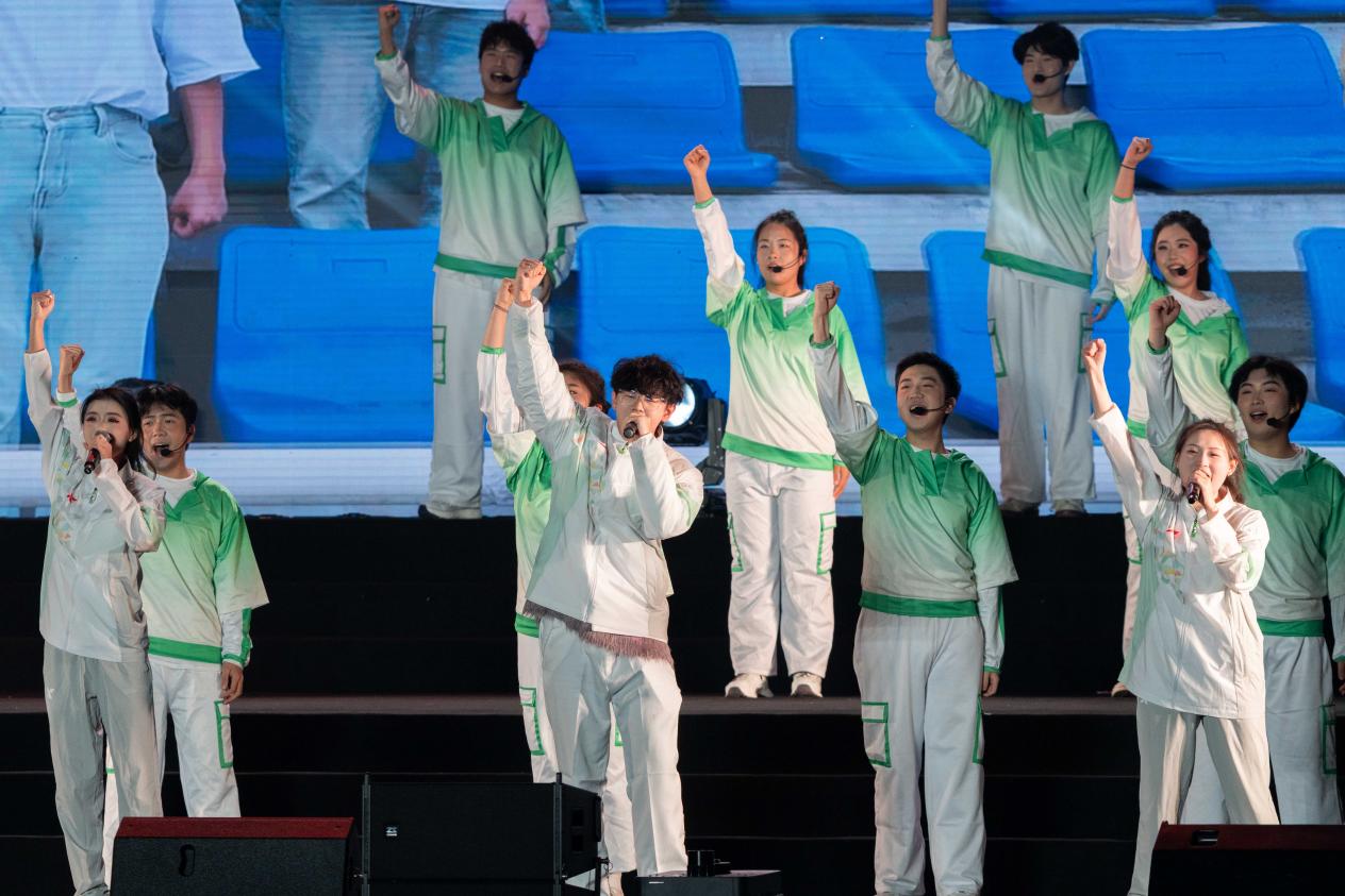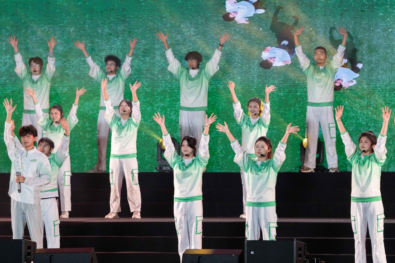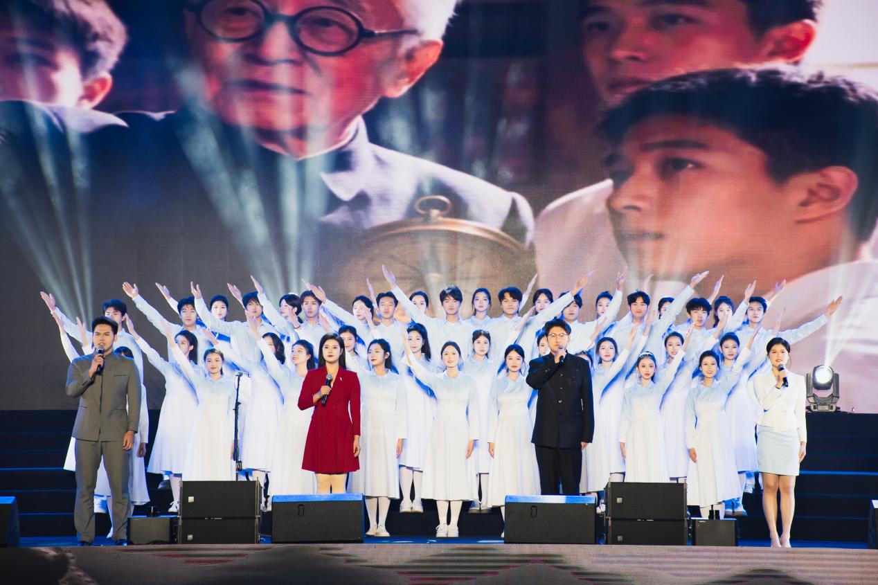 《地质华章七秩赞》朗诵以铿锵有力的语调、饱含深情的文字,回溯学校七十年来深耕地矿、与地球对话的光辉历程,百人齐诵的声浪如岩浆奔涌,将成理人的坚守与担当传递给在场每一位观众。
