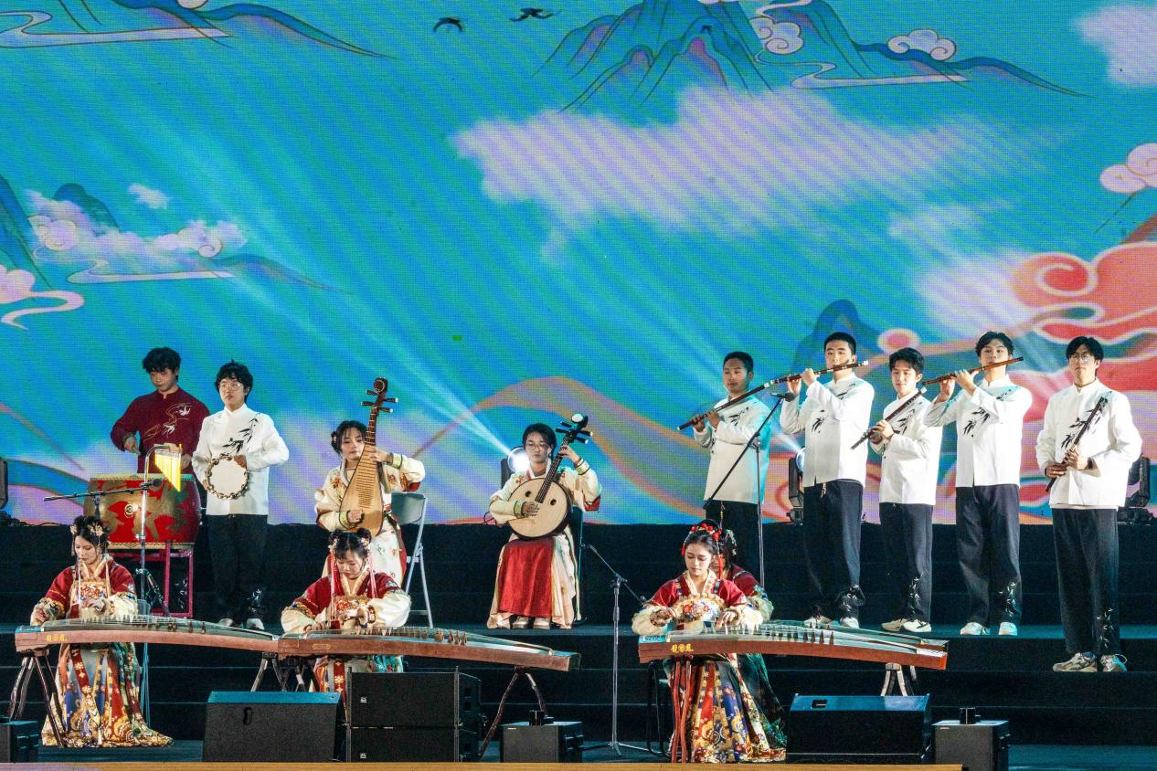 晚会第二篇章以“奋楫争先·青春绽放”为主题。民乐合奏《上春山》用悠扬旋律编织出春日万物复苏、生机盎然的唯美画卷,让观众沉浸在古典音乐的雅致意境中。