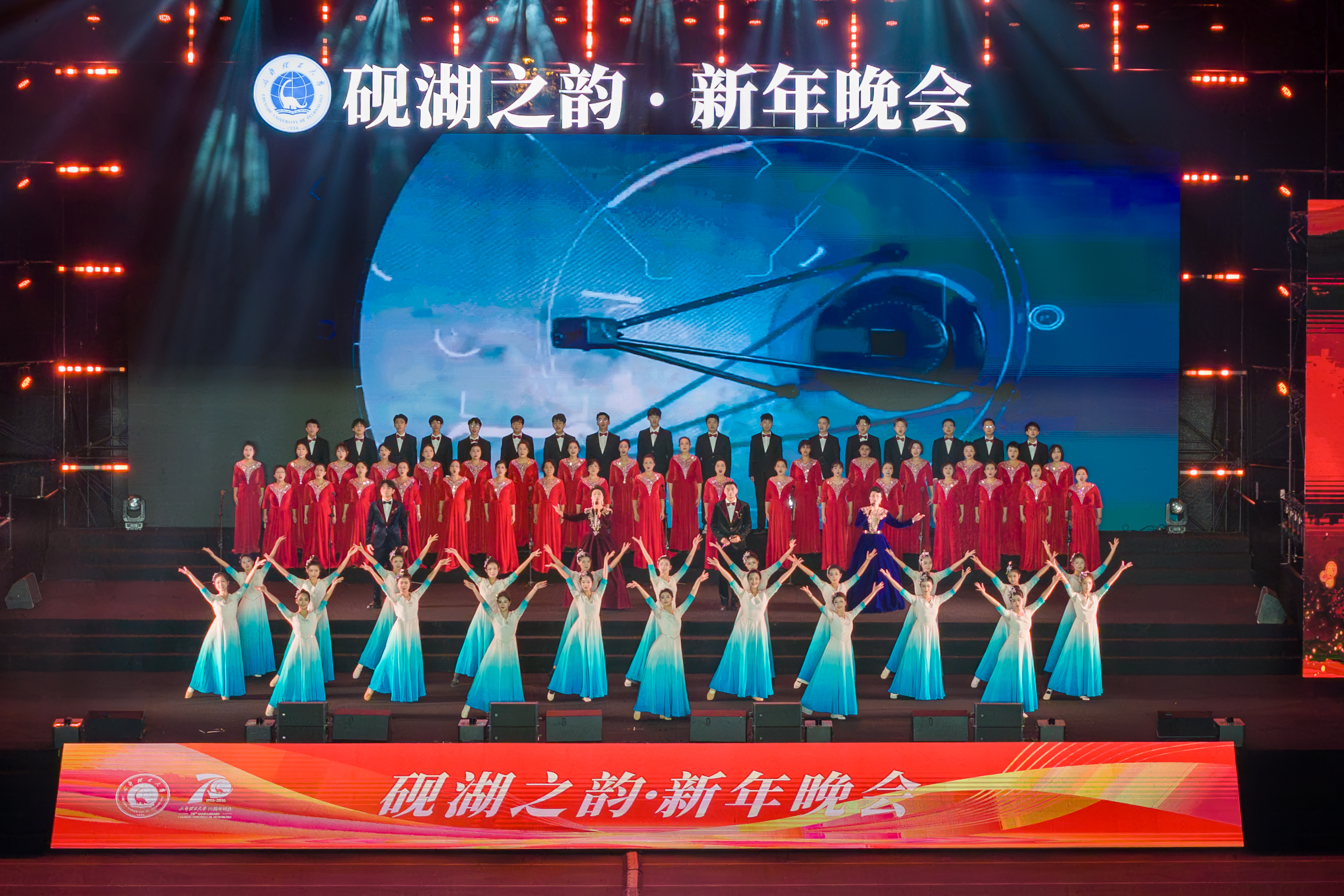 晚会围绕“七秩风华·地质初心”“奋楫争先·青春绽放”“领航逐梦·共赴新程”三大篇章展开,以艺术化形式生动呈现近七十载学校恪守初心、矢志创新的发展史诗。展现新时代成理师生昂扬奋发、创新有为的精神风貌,传递出温暖而坚定的奋进力量,为新的一年凝聚力量、鼓舞士气。