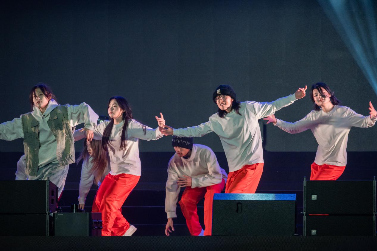 成都理工大学宜宾校区和成都校区的学子合作的《跑酷未来式》街舞串烧将跑酷的快节奏与街舞的灵动完美融合,舞者们用高难度的动作、流畅的衔接和饱满的热情,让寒冷的夜晚变得热血沸腾,尽显青春朝气。