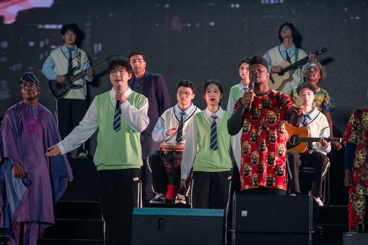 乐队成员和留学生代表以饱满的热情、嘹亮的歌声共同演绎经典曲目《We are the world》,旋律中传递出的友爱、团结与希望,跨越语言与国界,让全场师生在音乐的共鸣中感受世界的温暖与力量。