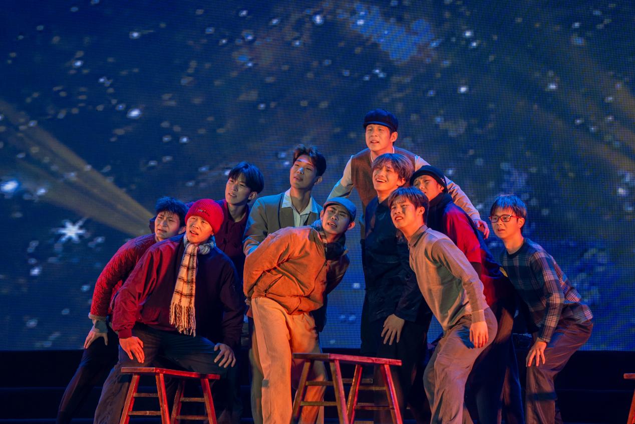 《领航》以合唱团恢弘的和声搭配舞者整齐划一的磅礴舞姿,打造震撼人心的艺术矩阵,让主旋律在舞台上化作星河漩涡,引领观众感受时代脉搏与家国情怀。