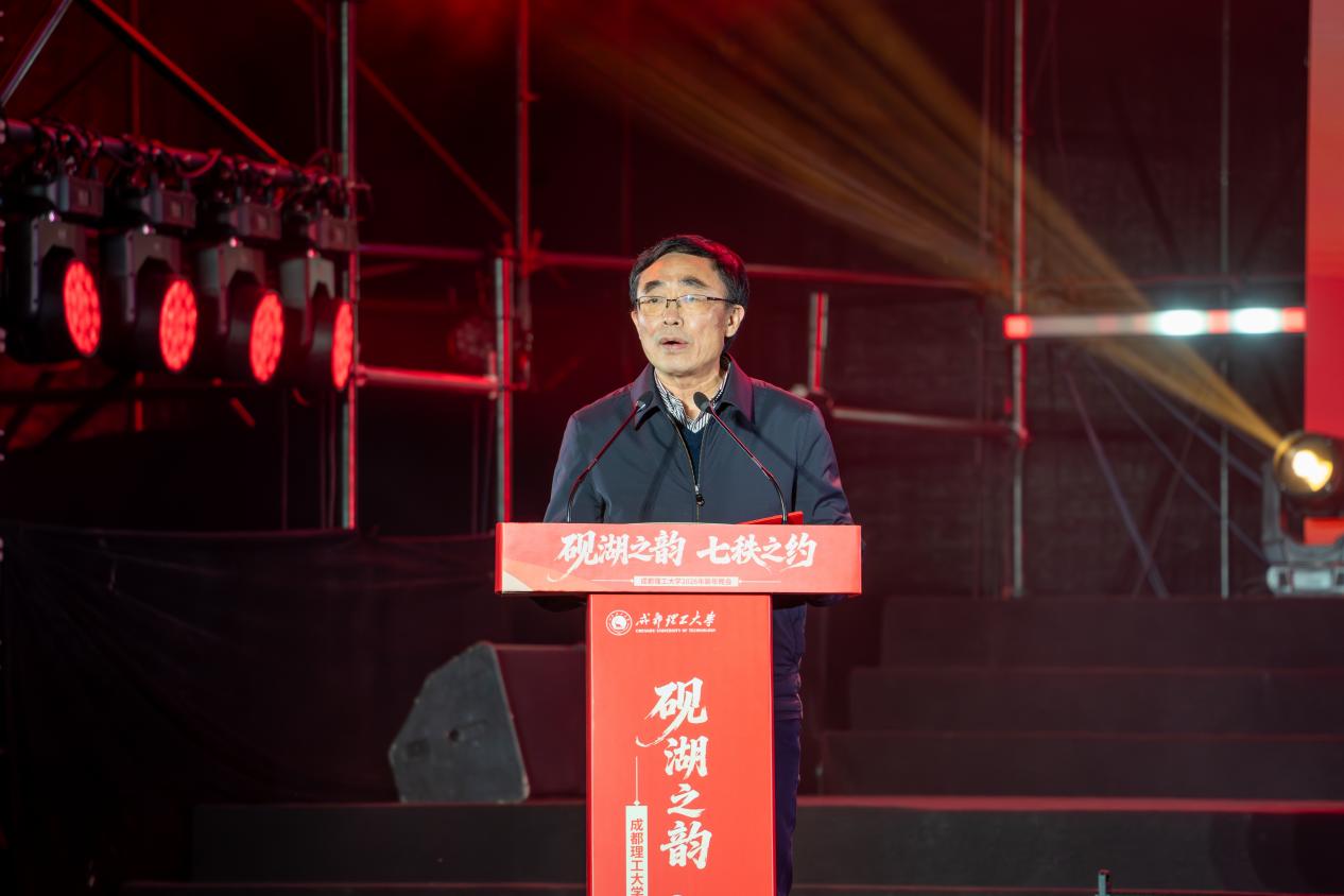冬韵渐浓,新元启幕。12月28日晚,成都理工大学2026“砚湖之韵·七秩之约”新年晚会在成都校区东区运动场举行。校党委书记刘清友,校长许强,党委副书记胡兵,省纪委监委驻校纪检监察组组长、党委副书记、纪委书记唐清利,副校长巨能攀、周仲礼、曾国强、郭强与全校10000余名师生欢聚一堂,在歌舞欢腾中回望奋斗岁月,在薪火相传中奔赴崭新征程。