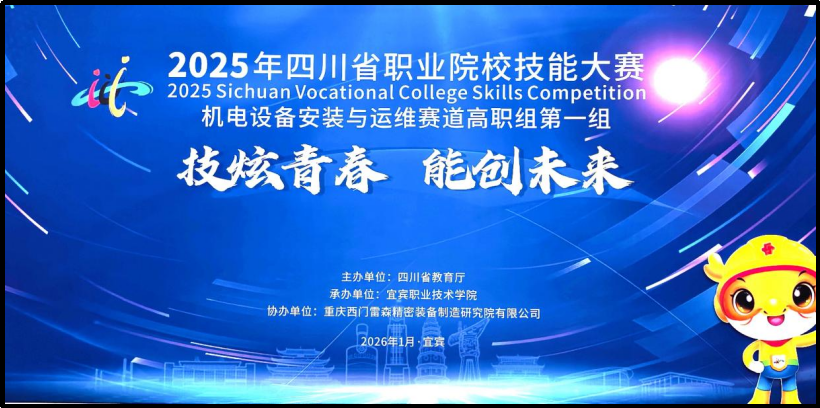 1月30日,2025年四川省职业院校技能大赛机电设备安装与运维赛道(高职组第一组)在宜宾职业技术学院顺利举办。本次比赛由四川省教育厅主办、宜宾职业技术学院承办、重庆西门雷森精密装备制造研究院有限公司协办,以“精彩、公平、专业、开放”为办赛理念,为全省高职机电类专业师生搭建了技能竞技与交流学习的优质平台,更彰显了职业教育对接产业需求、深化产教融合的发展成果。